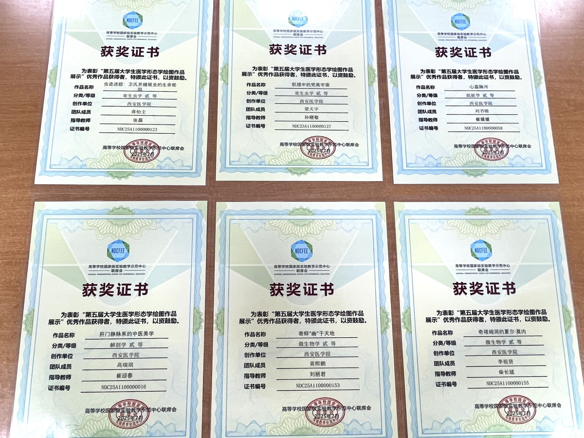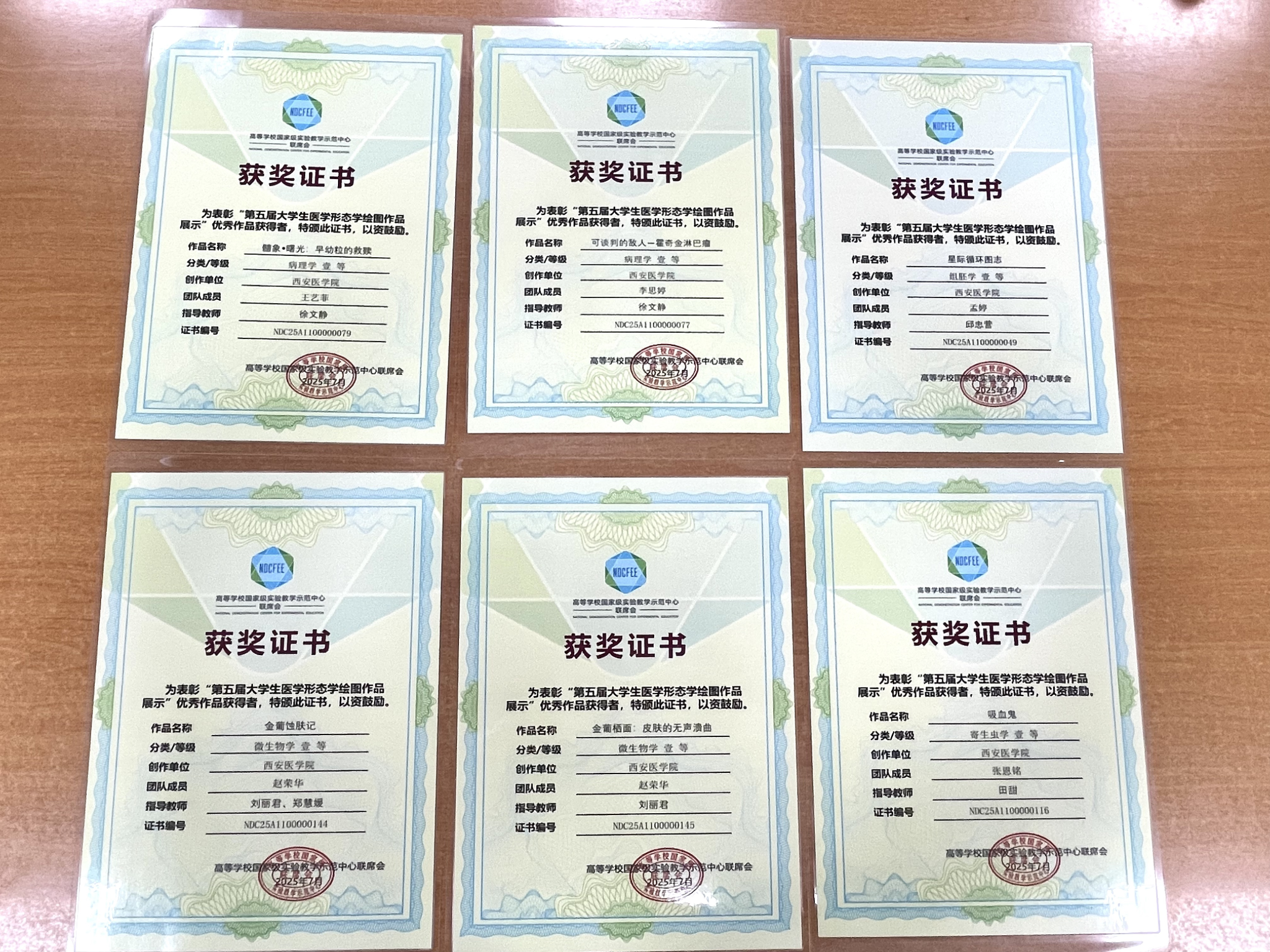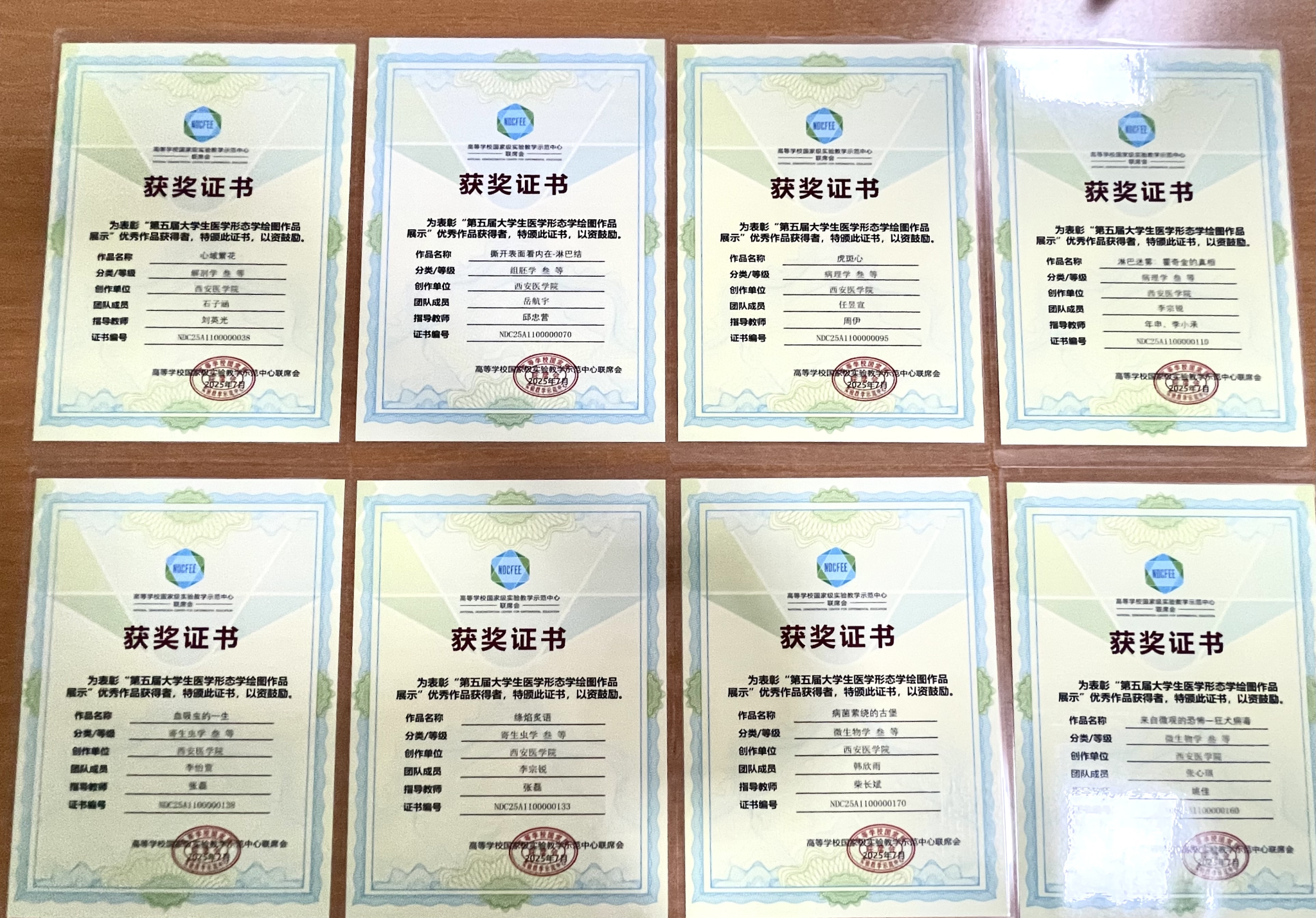 本次大赛旨在培养医学生对基础医学的认知力、想象力、审美力以及形象思维和创新能力,推动“知识、能力、素质”三位一体人才培养目标的实现。基础医学部高度重视此次比赛,教师对学生进行一对一指导,将专业知识与艺术创作有机结合。2025年4月至5月基础医学部组织了校赛选拔,最终推选30幅优秀作品参加全国评选。由来自全国各高校专家组成的评委会依据作品的科学性、艺术性和创新性进行综合评分,我校学子凭借扎实的医学功底和独特的艺术表现力脱颖而出,在所有五个赛道拿下奖项大满贯,共获奖21人次,其中一等奖6项、二等奖6项、三等奖8项、优秀奖1项;医学微生物学赛道6幅送赛作品全部获奖,为全国唯一单一赛道送赛作品全部获奖的高等医学院校。比赛的优秀成绩,充分展现出学校在医学形态学教学领域的突出成果。