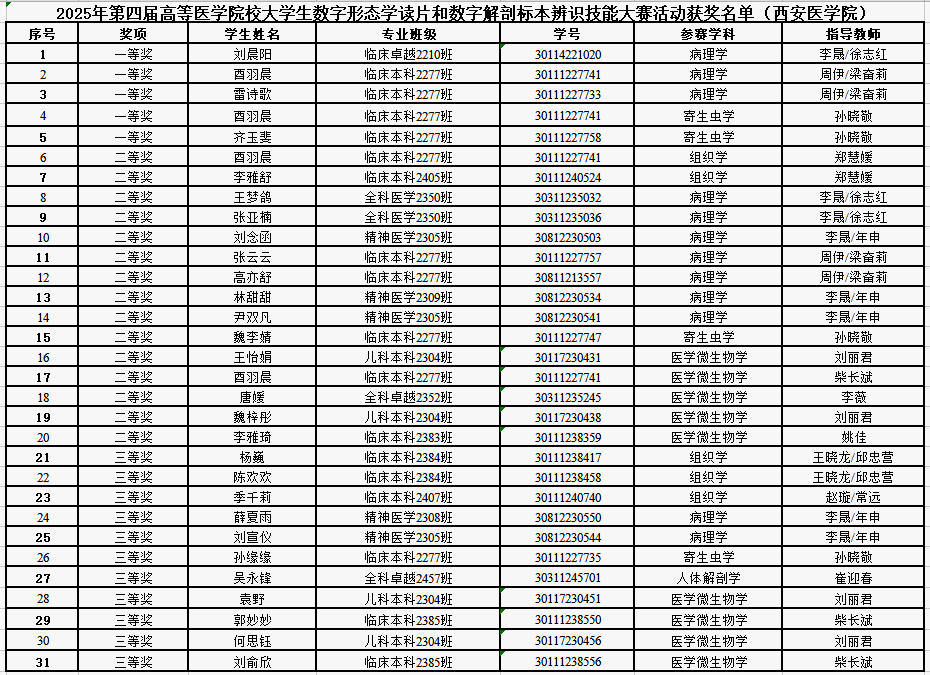 2025年12月7日,由全国基础医学形态学实验室主任联席会主办的“第四届高等医学院校大学生数字形态学读片和数字解剖标本辨识技能大赛”决赛顺利举行,西安医学院考点设在基础医学部形态学实验中心。